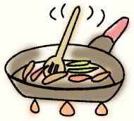 ゴボウ、じゃが芋、人参、ピーマン等の炒めものに、小袋をやぶって中身をふりかけて使います。