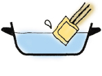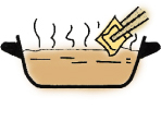 火を止め、パックを鍋のふちで絞るようにした後、取り除いてください。