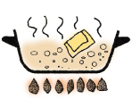 ひたひたまでの水に入れ火を通します。(カレーを作る要領です。)